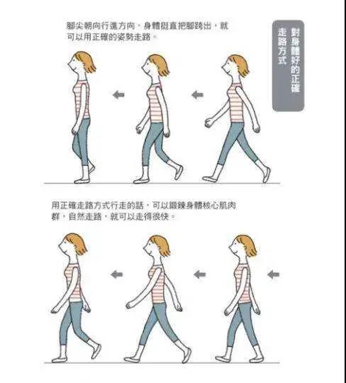 正确的走路姿势应该是,两只眼睛正向前看,头部略微抬起,颈部保持直立,胸部自然向前,腰部平直,下腹部和臀部向后略微突出。将低头俯工作的状态转变为抬头走路的状态,可以补偿头部长期工作和血液循环不畅引起的紧张,为大脑提供休息。