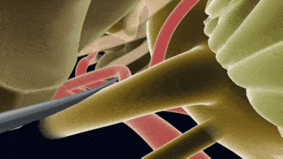 术中显微镜下识别面神经痛的区域,分离压迫的责任血管,采用垫棉材料置于血管和脑干之间,解除压迫和疼痛。手术不损伤脑组织,在保留面神经正常功能的情况下改善疼痛,术后不会影响病人的日常生活。