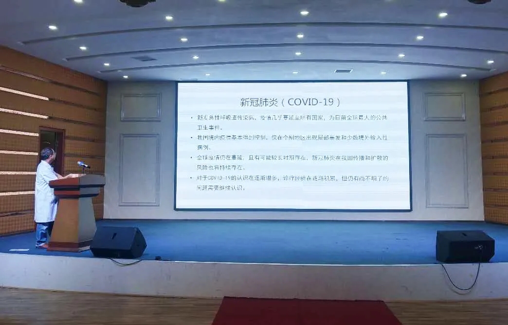 培训由我院医务科科长陈建刚主持,他在培训中指出,疫情发生以来,在我院全体职工的共同努力下,取得了零感染的成绩。现在新冠肺炎有卷土再来的趋势,大家一定要保持住胜利果实,思想上不松懈,行动上不松劲,高度重视疫情防控,防止疫情发生反弹。
